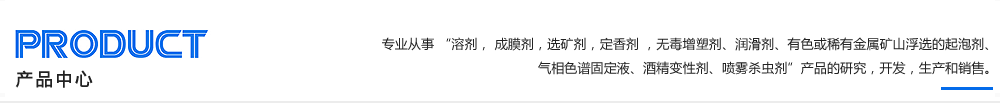 ? 公司專業(yè)從事 “溶劑, 成膜劑,選礦劑,定香劑 ,無毒增塑劑、潤滑劑、有色或稀有金屬礦山浮選的起泡劑、氣相色譜固定液、酒精變性劑、噴霧殺蟲劑”產(chǎn)品的研究,開發(fā),生產(chǎn)和銷售。